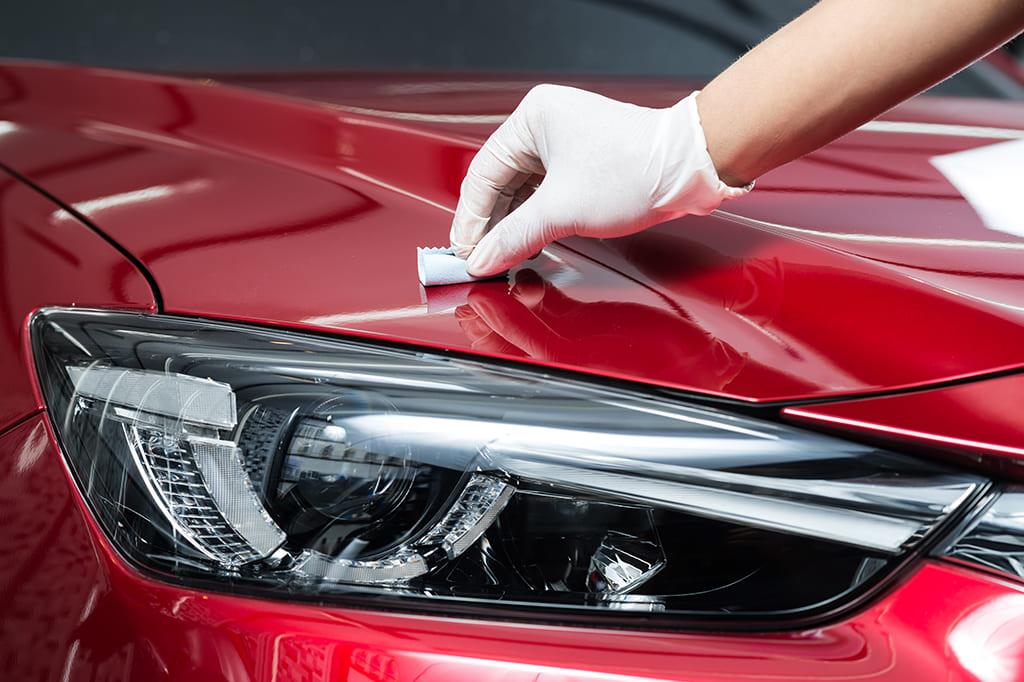 その柔軟なガラス被膜の上に、さらに特殊な「レジン」の膜を作り、水シミを強力に防止すると同時に、より強いツヤを生み出しています。